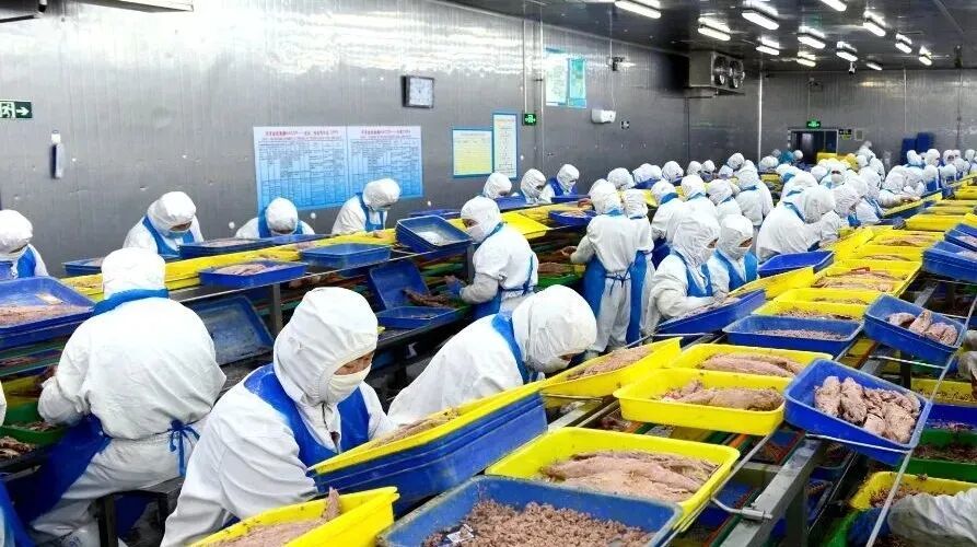 Step into this tuna-processing enterprise, where workers are busy filleting and deboning the tuna, transforming it into products like fish-fillet canned goods that are sold in both domestic and international markets. The person in charge told reporters that all these tunas are caught by the company's own distant-water fleet, with an annual output of around 15,000 tons. Compared to direct sales, the value of the processed seafood nearly doubles.